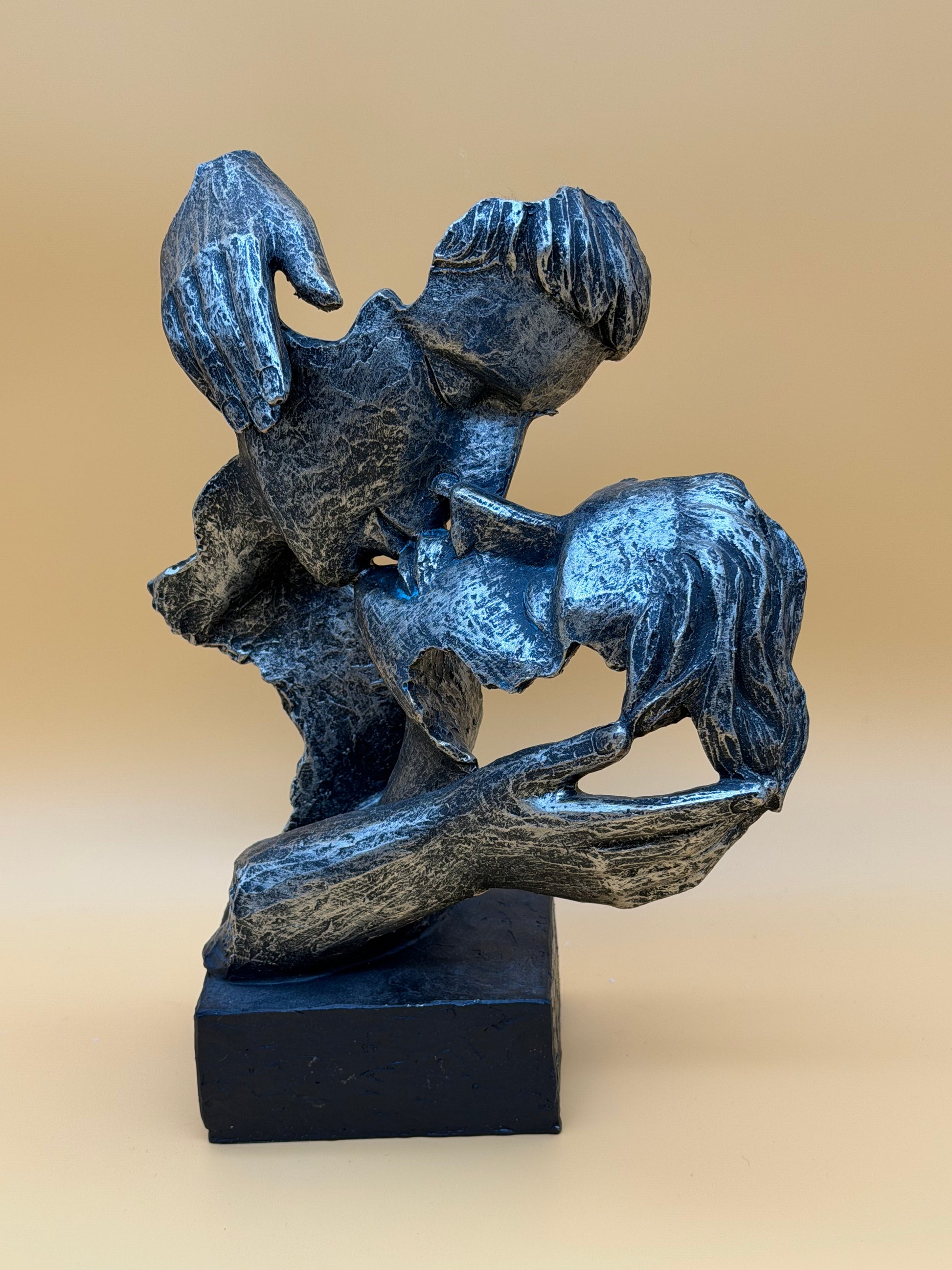 Romantische Büste eines küssenden Paares auf dunklem Sockel – ein zeitloses Kunstobjekt voller Zärtlichkeit. Diese fein gearbeitete Skulptur verkörpert Liebe und Leidenschaft und eignet sich als durchdachtes Geschenk für besondere Anlässe. Ihre klassische Eleganz passt harmonisch in jeden Wohnraum, vom modernen Loft bis zum traditionellen Interieur, und wird zum Blickfang in Wohnzimmer, Schlafzimmer oder Büro.