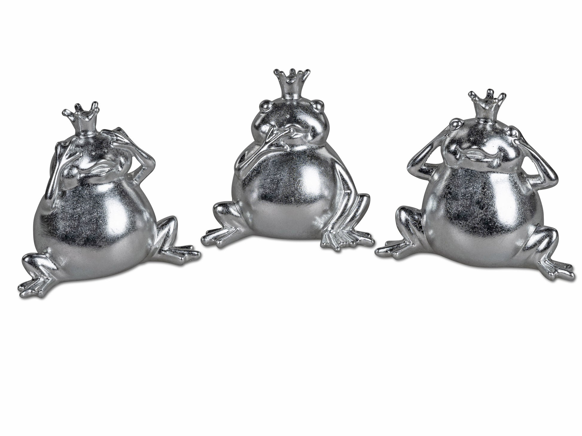 Der Froschkönig besticht durch seine antik-silberne Oberfläche, die ihm eine edle, altertümliche Anmutung verleiht. Seine fein gearbeiteten Details, von den geschwungenen Krönchen bis zu den zarten Füßchen, lassen ihn wie eine kostbare Schatztruhe antiker Kultur wirken.