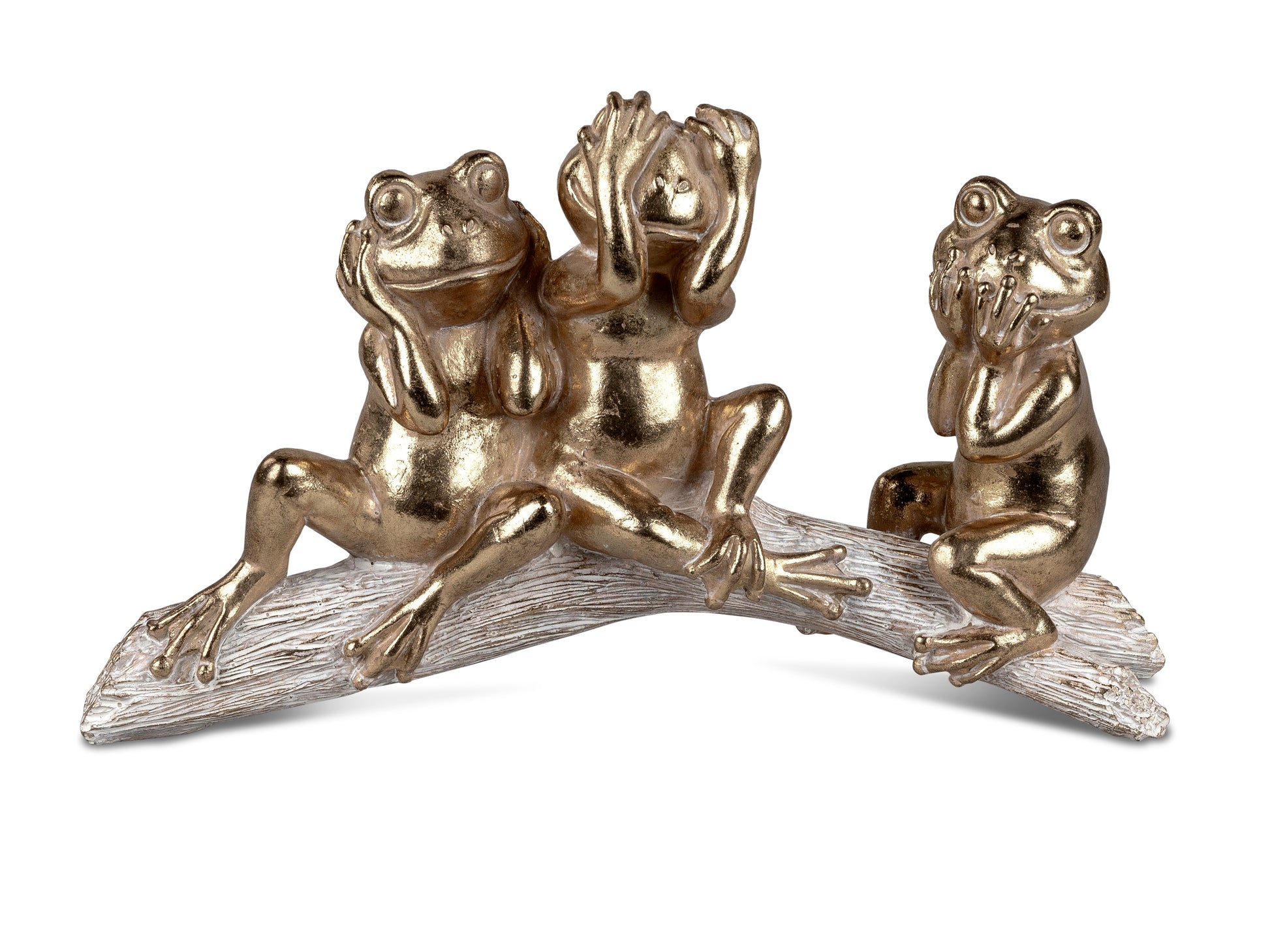 Der antik-goldene Vintage-Look verleiht der Skulptur eine zeitlose Eleganz, die gut zu verschiedenen Einrichtungsstilen passt. Ob als Dekorationselement in einem Regal, als Blickfang auf dem Wohnzimmertisch oder als dekoratives Element im Garten - die Froschgruppe auf dem baumstammähnlichen Sockel wird sicherlich viele bewundernde Blicke auf sich ziehen.