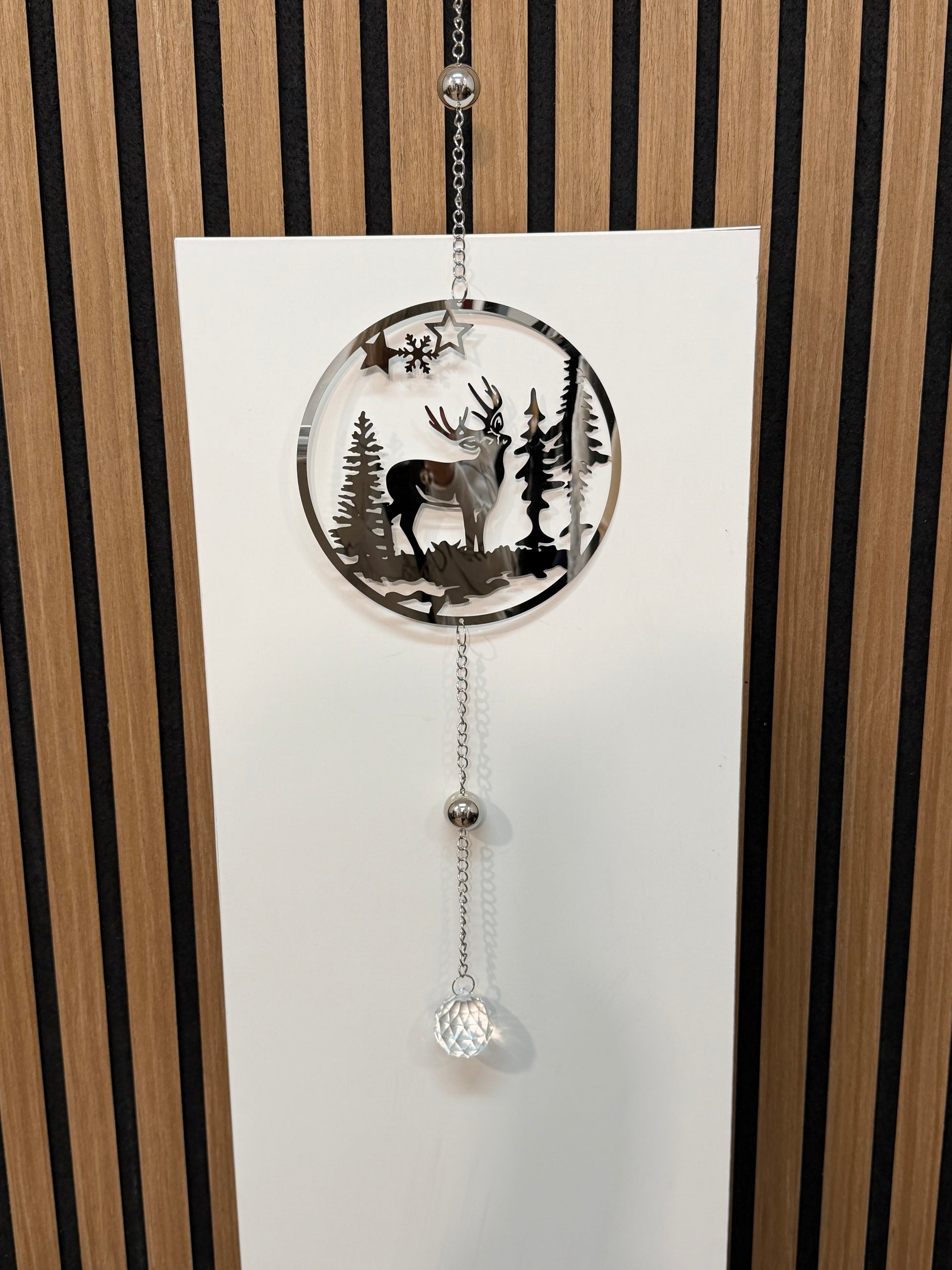 Anspruchsvoller Kettenanhänger mit zwei kunstvoll gestalteten Hirschmotiven in Silberausführung. Die doppelseitigen Motive ermöglichen eine flexible Trageweise und garantieren von jeder Seite ein ästhetisches Erscheinungsbild. Ein klassisches Accessoire mit zeitlosem Appeal, ideal für Schmuckliebhaber, die Wert auf handwerkliche Qualität und dezente Eleganz legen.