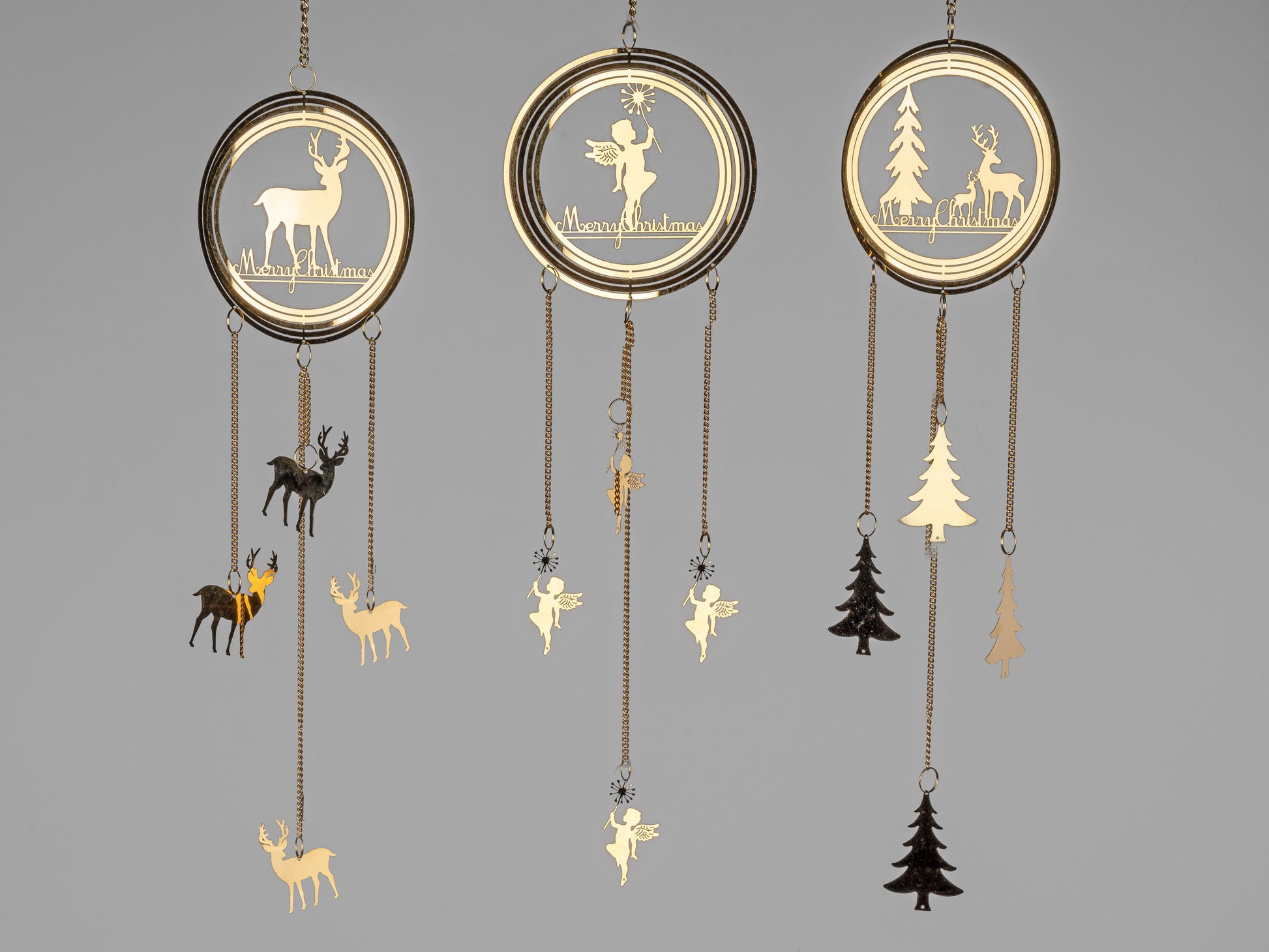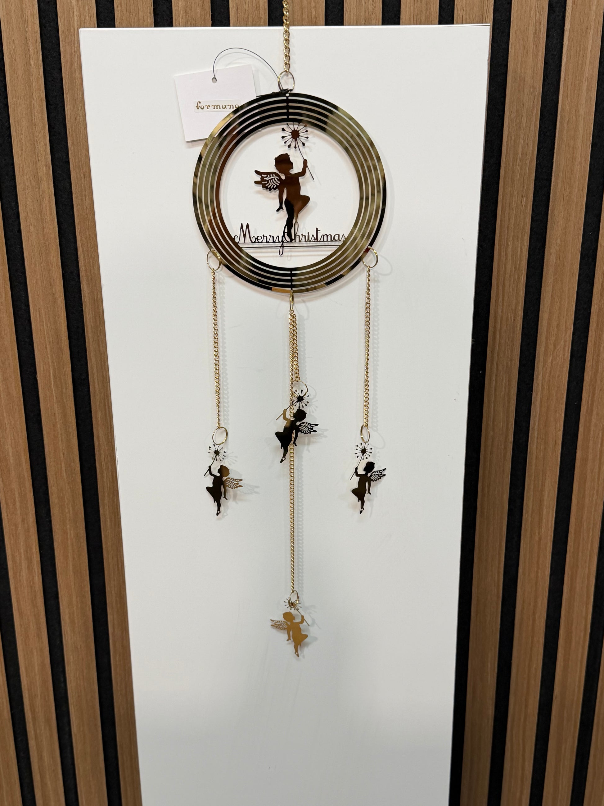Elegante Hänger mit Engelsfiguren aus hochwertigem Material mit goldfarbener Oberfläche. Diese dekorative Hängefigur besticht durch ihre feine Verarbeitung und eignet sich hervorragend als stilvolles Accessoire für Ihre Raumgestaltung. Die zeitlose Ästhetik macht sie zu einem vielseitigen Dekorelement für verschiedene Einrichtungsstile.