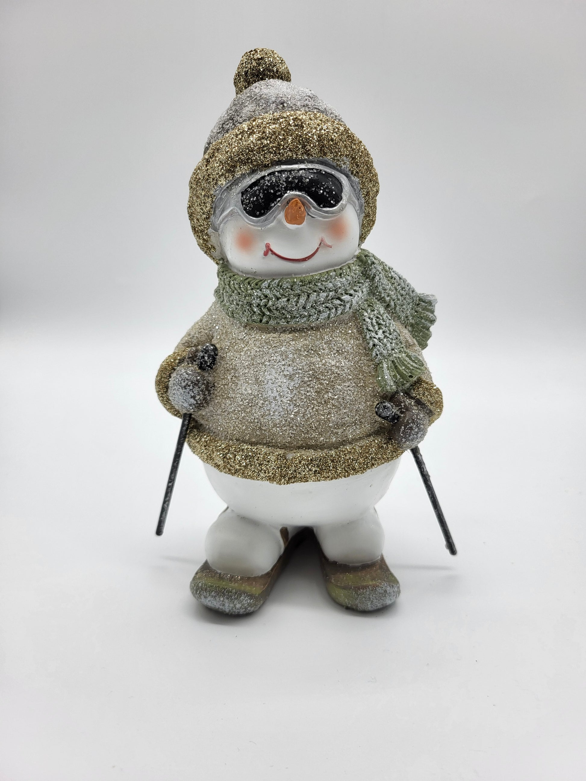 Charmante Weihnachtsfigur mit winterlichem Flair: Ein eleganter Schneemann in Skiausrüstung als stilvolles Dekorationselement für die festliche Jahreszeit. Mit einer Höhe von 20 cm präsentiert sich dieses Accessoire als perfekte Ergänzung für Ihre Weihnachts- und Winterdekoration. Ideal für Liebhaber klassischer Weihnachtsmotive mit sportlichem Twist.